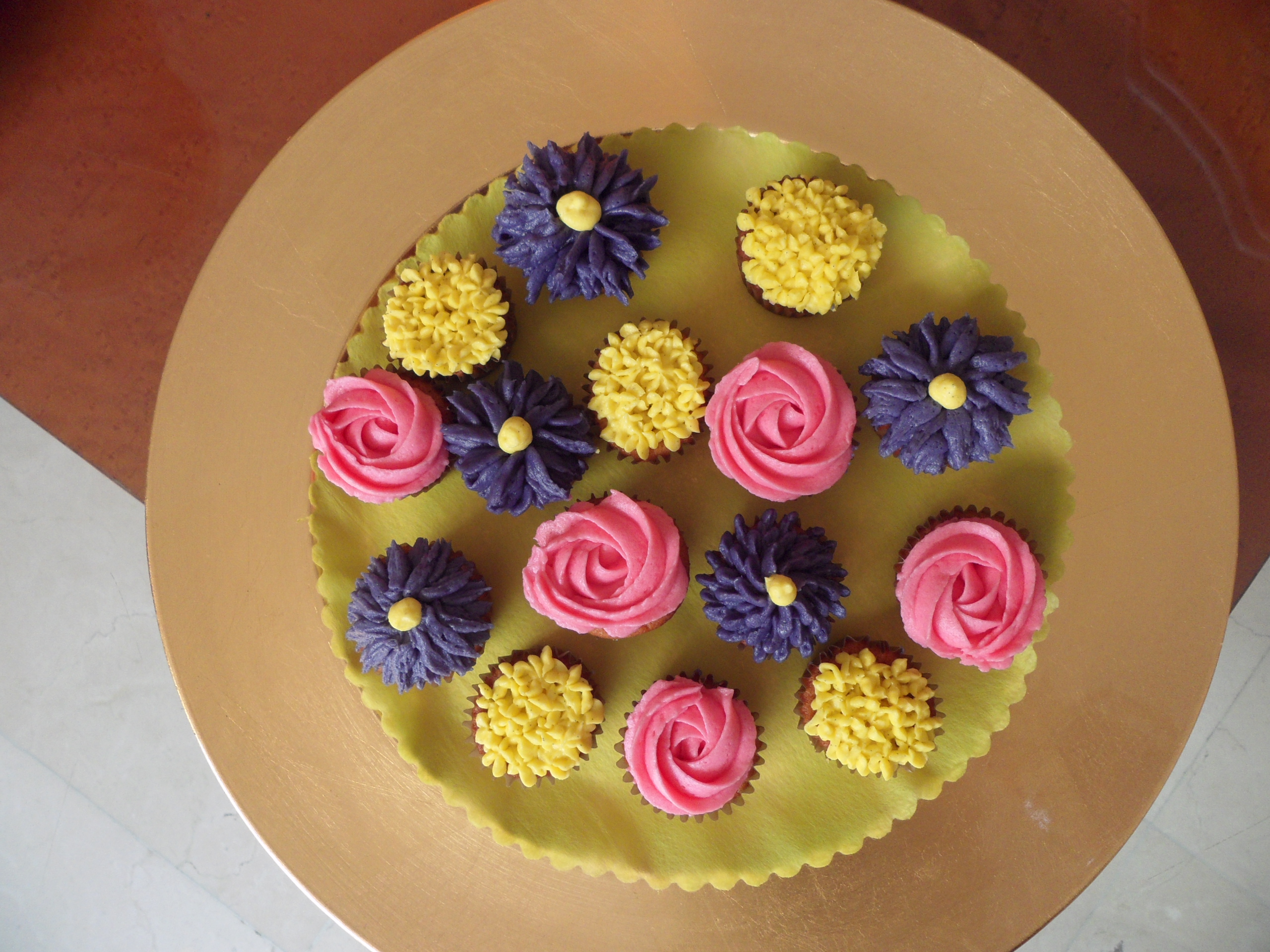 It sounds so easy, butter, sugar and some vanilla extract. That’s classic American Buttercream. It’s the only buttercream I was aware of when I began baking. Now I know, there’s a lot more to it. All the youtube videos out there will make you believe that buttercream can be made with your eyes closed. What they don’t take into account is personal taste, frosting purpose and the ingredients that are locally available to you. Each recipe has different proportions. Some use shortening, some use butter, some use both. Then you’ll discover there are continent specific Buttercreams like the European Swiss Meringue Buttercream, Italian Meringue Buttercream and French Buttercream. Don’t be intimidated, it’s just the Europeans being snooty and adding raw egg to their frosting. According to me, that definitely poses health risks. American Buttercream requires a lot, almost a pound per batch, of icing sugar. That makes for really really sweet frosting. I prefer to use salted butter to cut the sweetness but it really depends on the recipe. If your frosting is too stiff you can use milk or cream to make it smoother. However you have to be careful to add the liquids one tablespoon at a time because you don’t want your frosting to be too runny either. The most important step according to me when making buttercream is beating the butter. It should be a pale yellow color and nice and fluffy before adding the sugar. For piping flowers the buttercream needs to be stiff, for swirls creamy and for a fondant topper or sprinkles runny buttercream is fine. Make sure there are no air pockets in your piping bag or there will be holes in your swirls. After decorating cupcakes, buttercream can be kept in the fridge for 20-30 minutes to set. Then make sure you keep them outside, covered, in a cool place. Buttercream tastes best at room temperature. If you like it crusty, chill it a few minutes before serving. Shortening is used when you want the frosting to last longer or when you need a white frosting but it doesn’t taste as good.