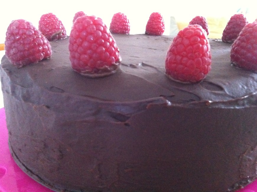 Dark Chocolate Raspberry Cake with Mixed Berry Jam Chocolate Ganache