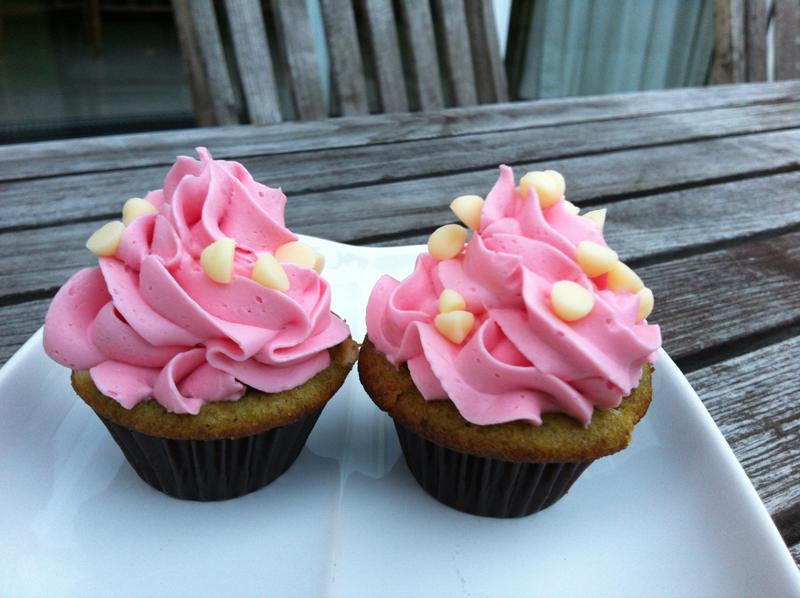 Pistachio, Rose and White Chocolate Chip Cupcakes